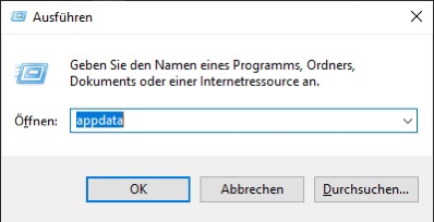 Zuerst drückst du WIN + R gleichzeitig, dann öffnet sich das Fenster "Ausführen", da einfach appdata reinschreiben und auf OK drücken.